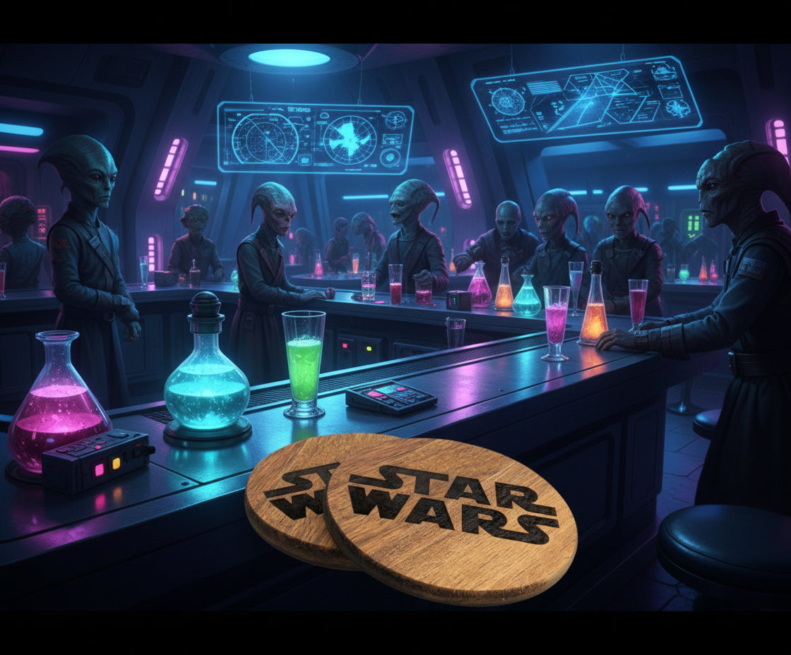 Each set comes with custom laser engraved designs on four (4) acacia wood coasters.